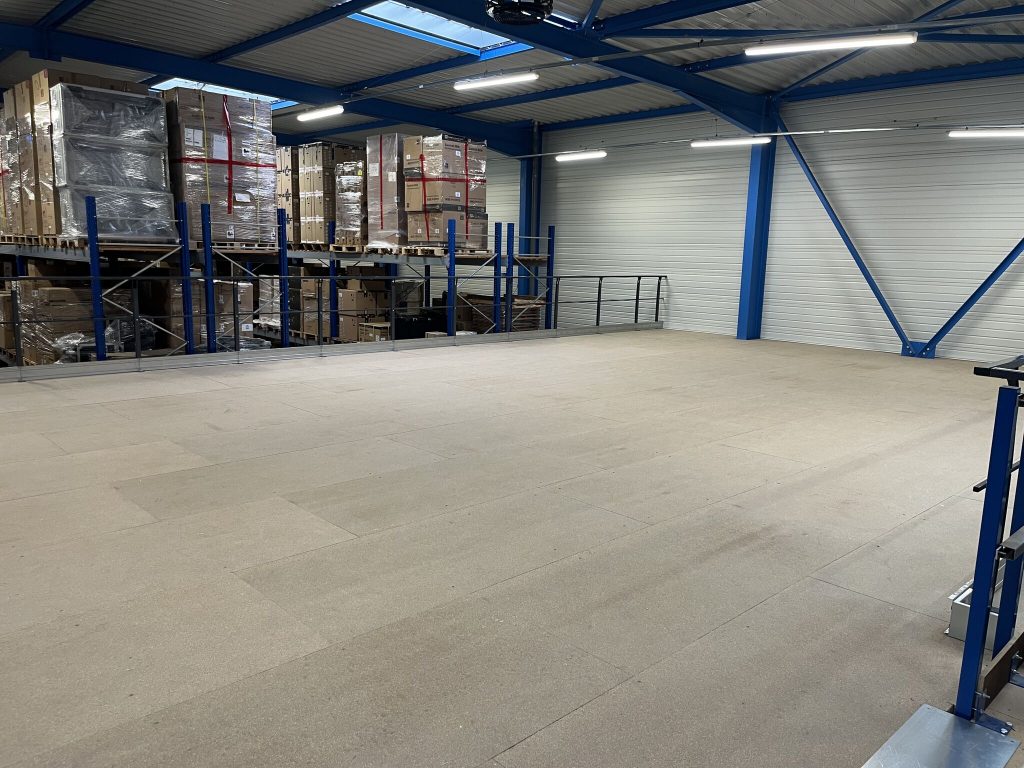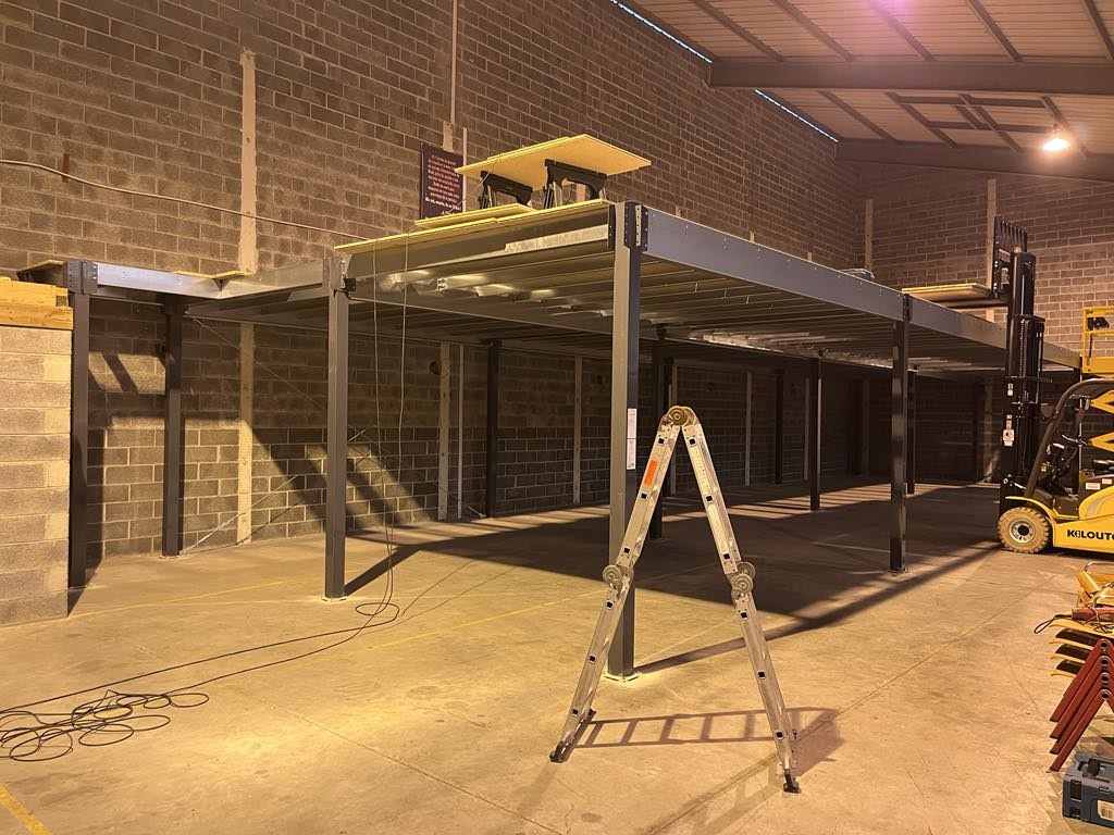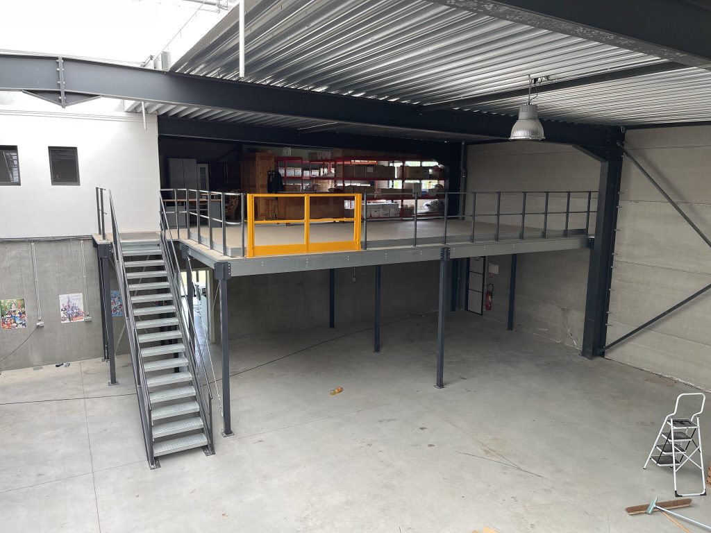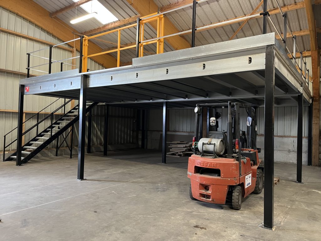 - Solution apportée : Fourniture et pose par MSRack d’une plateforme de stockage industrielle de 50m² avec double porte battante et garde-corps.